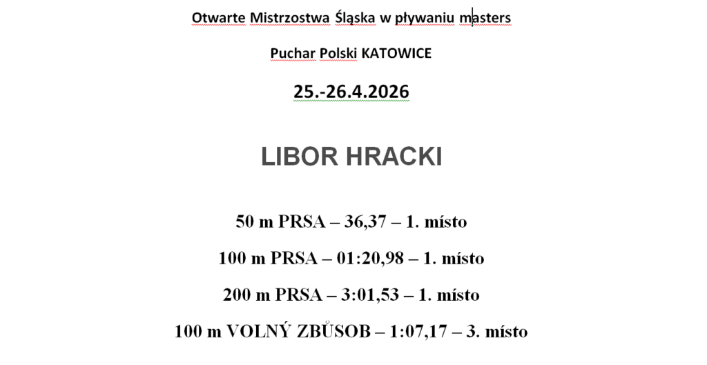 Plavci, kteří jsou přihlášeni na závody v Karviné 1. a 2. 5. 2026, ať nezapomenou dorazit.