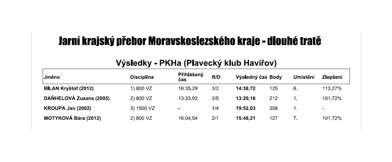 V sobotu 11.4.2026 se konal Jarní krajský přebor žactva Moravskoslezského kraje – dlouhé tratě v Karviné. Za náš oddíl se zúčastnili Kroupa Jan, Daňhelová Zuzana, Bilan Kryštof a Motyková Bára.