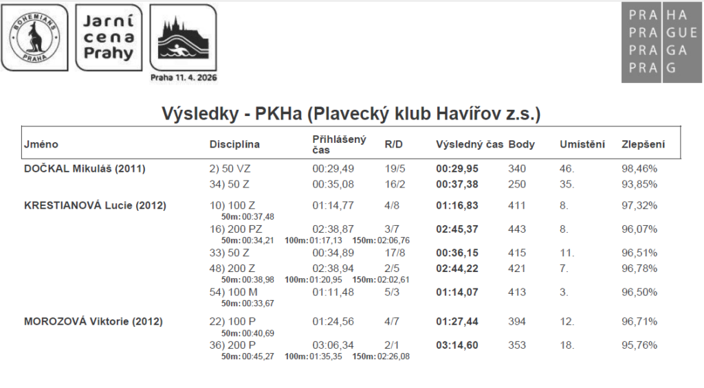 Plavci, kteří jsou přihlášeni na závody v Karviné 1. a 2. 5. 2026, ať nezapomenou dorazit.