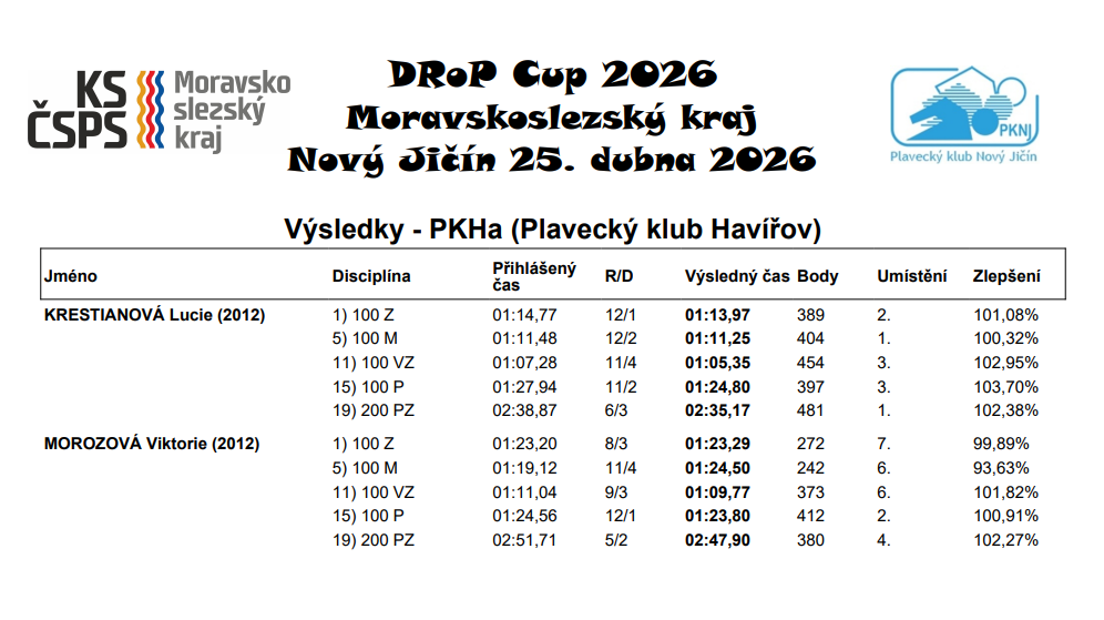 V sobotu 25. dubna se Lucie Krestianová a Viktorie Morozová zúčastnily DRoP cupu v Novém Jičíně.