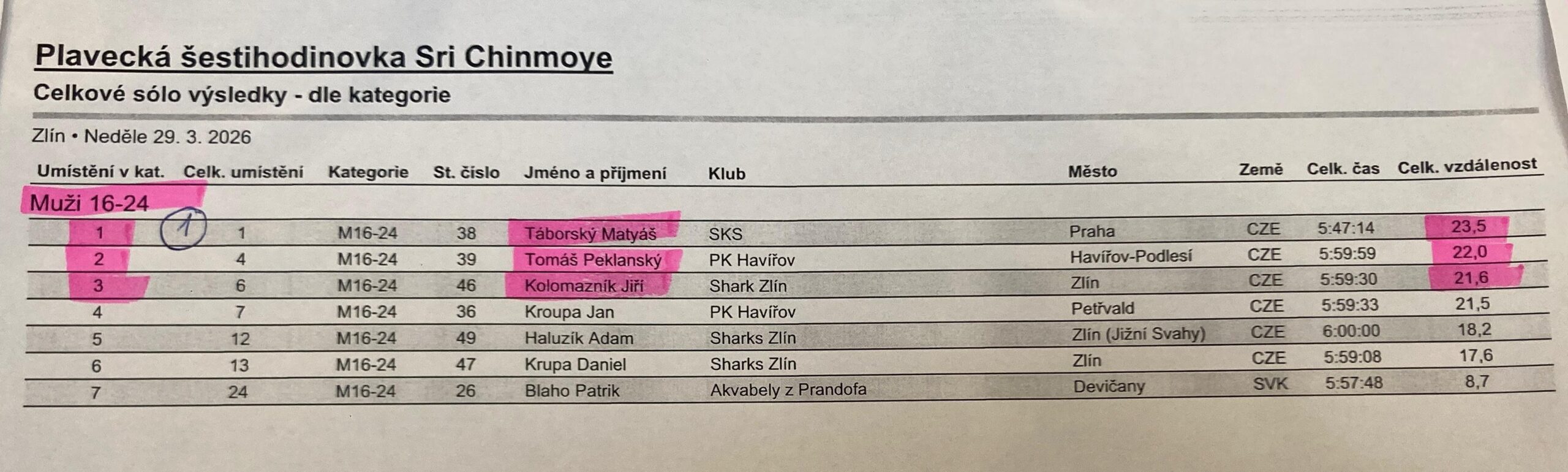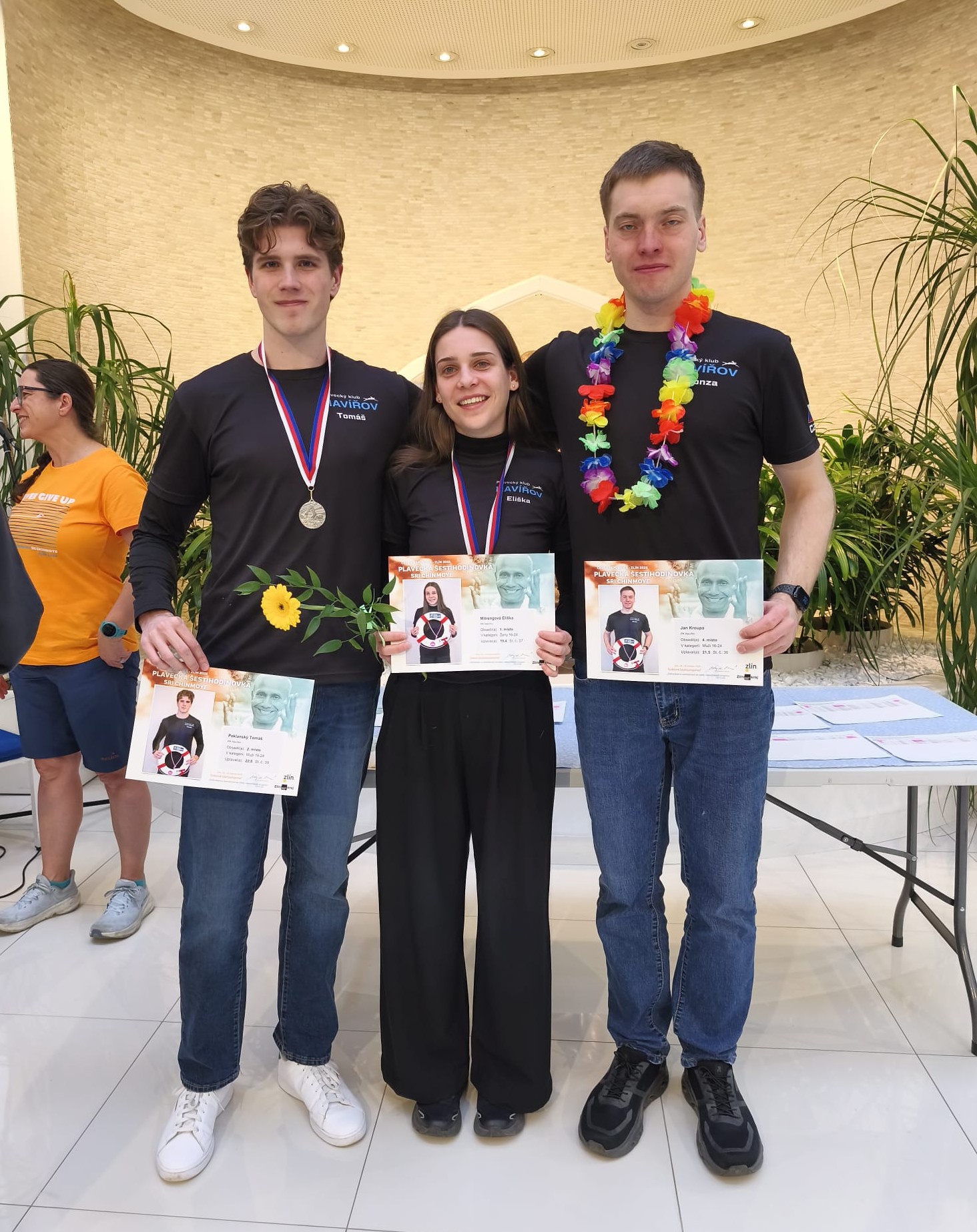 V sobotu 28.3.2026 jsme se zúčastnili Plavecké šestihodinovky Sri Chinmoye ve Zlíně. Zde jsme plavali 6 hodin v kuse v šestičlenné štafetě. V naší štafetě s názvem PK Havířov Sebranka byli: Eliška Gurníková, Zuzka Daňhelová, Václav Gurník, David Zaharowski, Pavel Mik a Jan Drozd Novák. Společně jsme uplavali 22,9km a tím jsme získali první místo v kategorii štafeta MIX. Pro Zuzku a Honzu to byla premiéra, kterou velice dobře zvládli. Za náš tým jako kapitánka mohu říct, že jsme udělali dobrou práci a také, že jsme si to všichni užili.